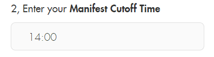 3) Following this you will need to enter your manifest cutoff time, this is used to determine at which time shipments should be recorded on the following days manifest. For example, if you want all shipments that are booked in after 4pm to be placed on tomorrows manifest then you would enter 16:00 in this field.