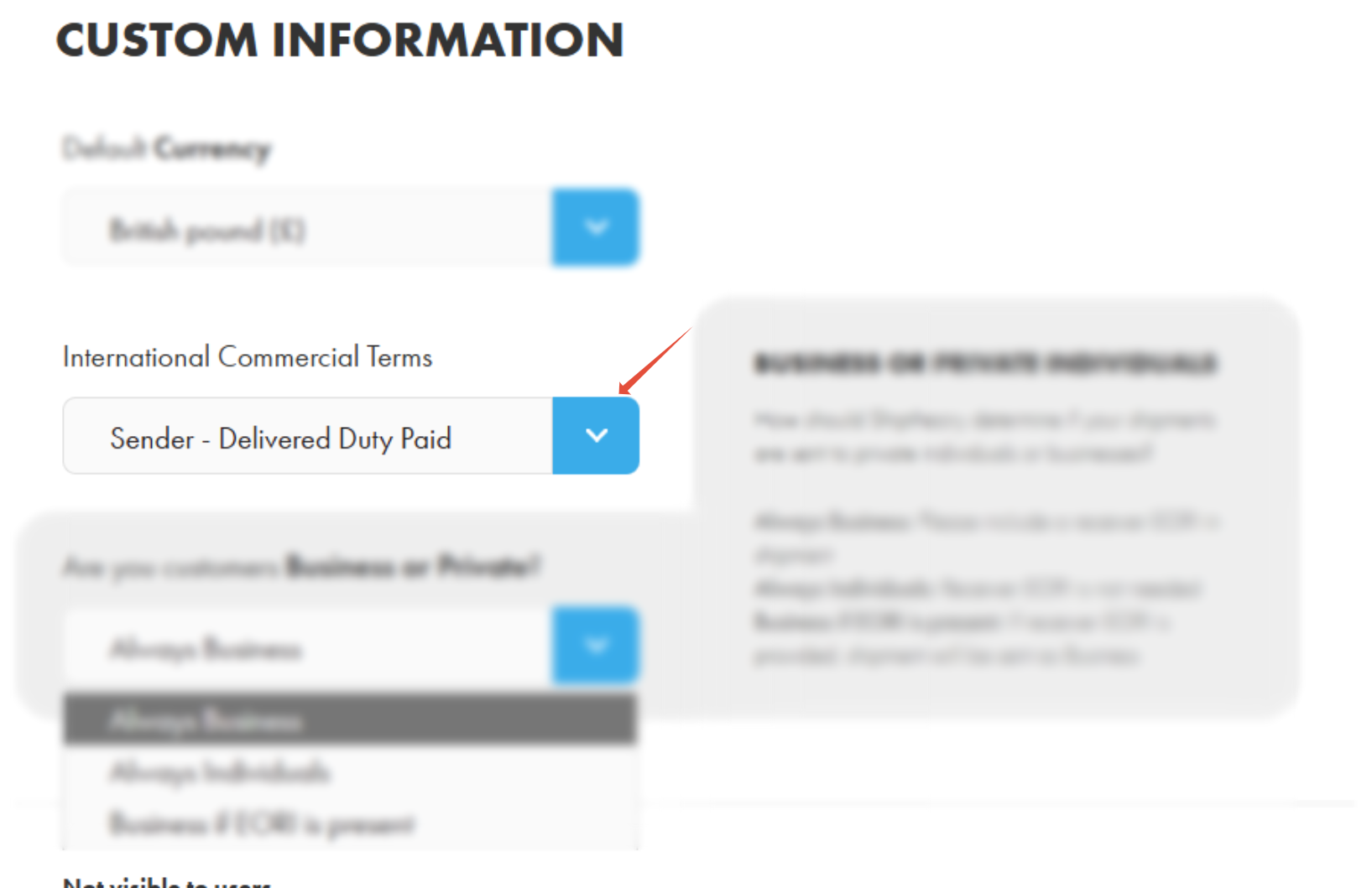 You can also set different default options in setting for International Commercial Terms (e.g., DDP or DDU) and specify the type of address you’re sending to.